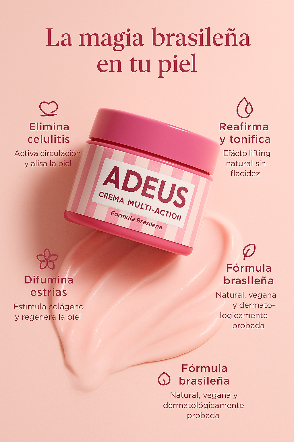 Sí 🌸 Adeus™ estimula el colágeno y regenera la piel, ayudando a suavizar tanto las estrías nuevas como las antiguas con el uso constante.